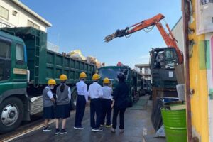 生徒さんの希望もあり、重機操作を披露してくださいました。間近で見ると迫力があったようで、写真に納めている生徒や怖がっている生徒もおり、様々な反応が見受けられました