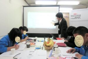 弊社初の企業訪問にいらしゃった中学校。4名の生徒が参加。
