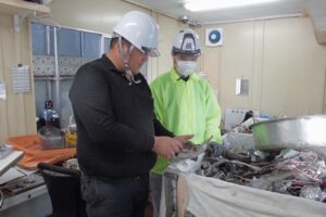 非鉄選別を学んでいただきました。フレコンの中から一つひとつ手作業で仕分けするのは難しいと思いますが、たくさん選別していくことで、製品の特徴を理解して頂くことができたと思います。 -
