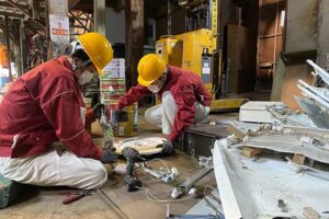 工場内では解体作業を行って頂きました。多種多様な道具を使いこなして様々な形をした製品を仕分けしてくださいました。時折、協力しあう姿も見られ素早く解体してくださいました。