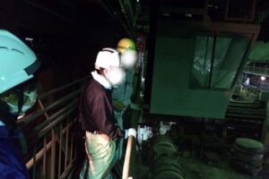納品先の電炉メーカーを訪問しました。普段見ることのできない、溶接窯や工場内に案内して頂きました。実際に目で見て体感したことで印象に残ってくれたら嬉しいです。 -